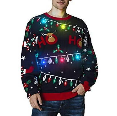 Barré – Guirlande et Tête de Renne – Pull Noël Lumineux