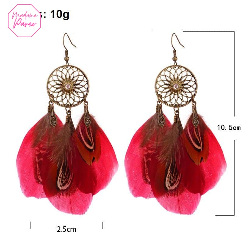Boucles d’Oreilles Ethniques Plumes Colorées
