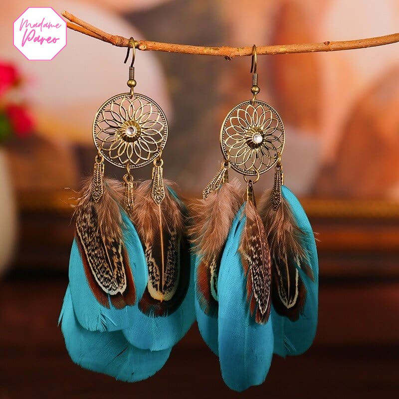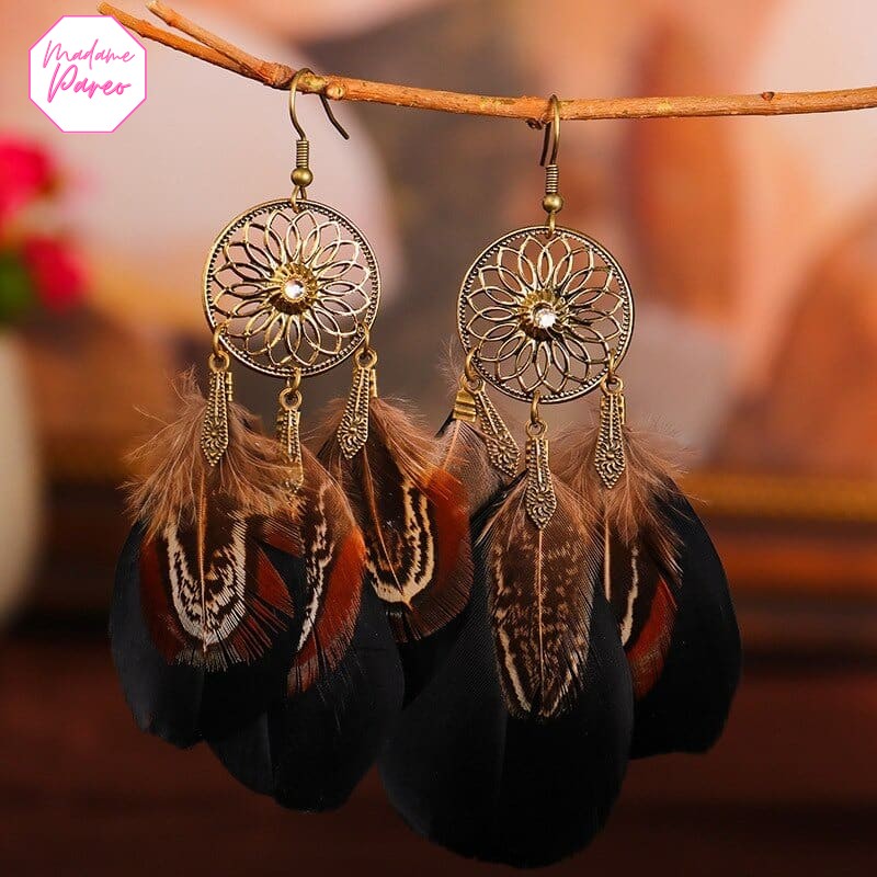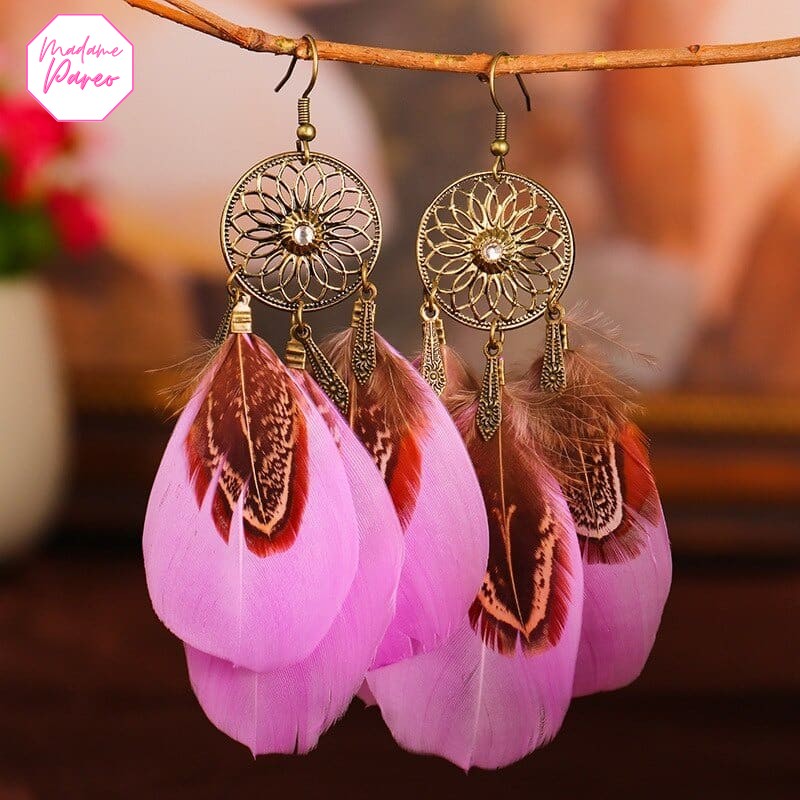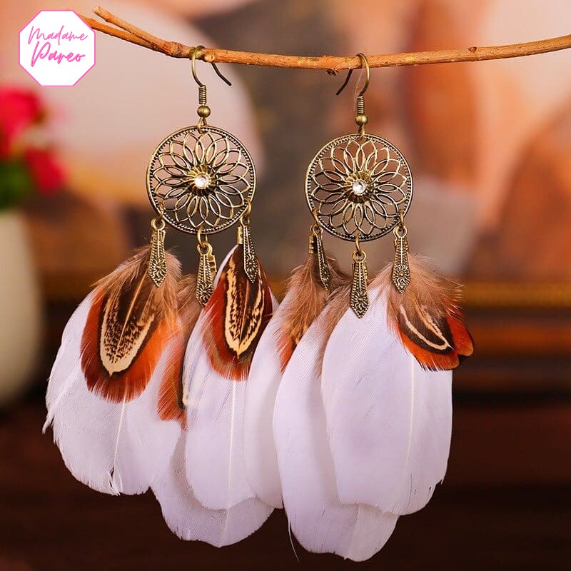 Boucles d’Oreilles Attrape-Rêve à Longues Plumes