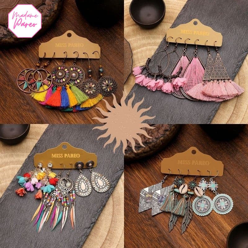Pour les adeptes d’bijoux bohème généreusement agrémentés de breloques, ce trio de boucles d’oreilles plumes vous ravira. Chaque pièce unique offre un assortiment de pendants variés, des plumes aériennes aux franges de coton, sans oublier de fines chaînettes. Avec ces options diversifiées, changez de style selon vos envies pour une allure toujours renouvelée et distincte.