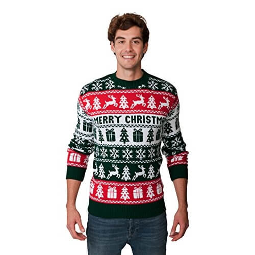 Britannique ou Norvégien ? – « Merry Christmas » – Motifs Renne, sapin et cadeaux de noël – Vert et rouge