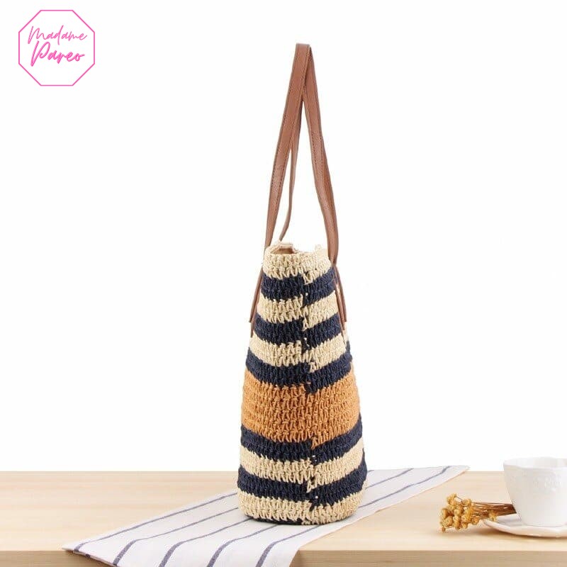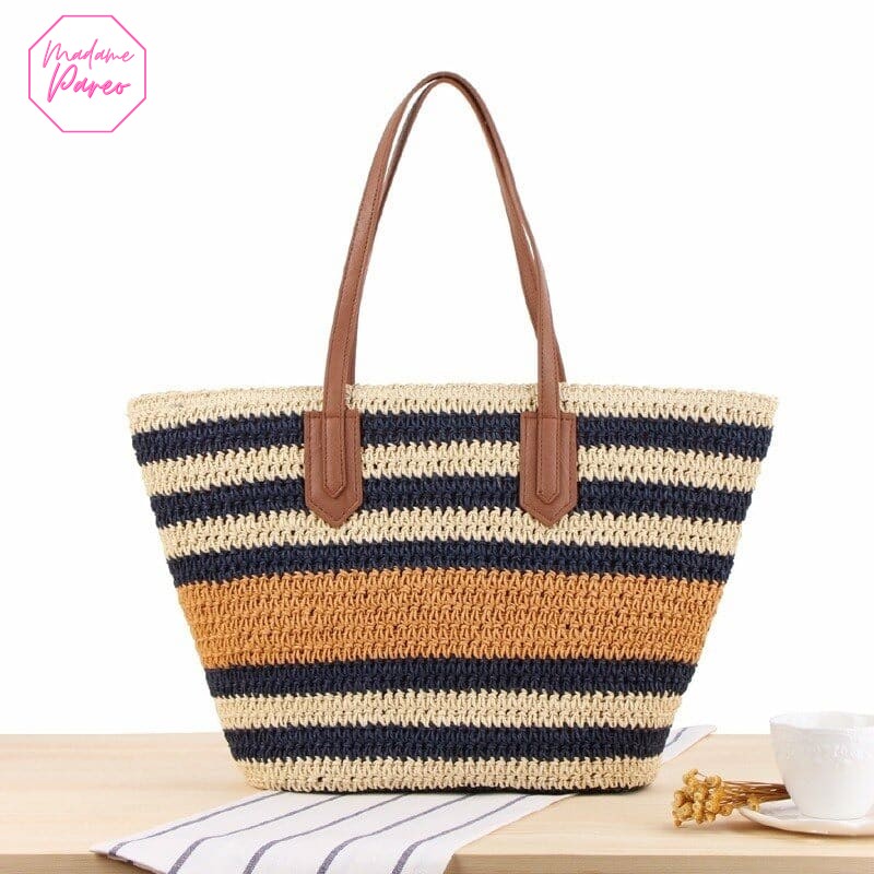 Les rayures intemporelles de notre sac femme ajoutent une touche de sophistication à vos tenues estivales. En tout simplicité, le tissage de ce modèle dégage une aura d’authenticité et un charme unique. Les finitions soignées, alliant esthétique et durabilité, en font un grand sac non seulement attrayant mais aussi robuste. Vous serez conquis par sa doublure rigide, offrant un espace réservé pour vos objets précieux.
