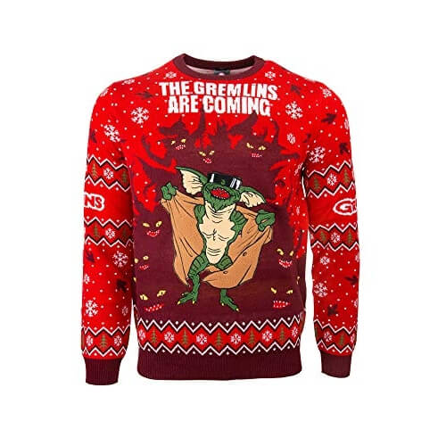 Un pull rouge avec un Gremlin en mode exhibitionniste. Parce que rien ne dit ‘Joyeux Noël’ comme un monstre des années 80 qui fait des avances indécentes. Fallait pas manger après minuit !