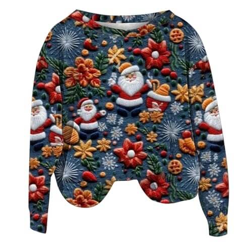 Ce pull moche de Noël est un accroche-regard et une blague ambulante. Multicolore, surdimensionné, avec des graphiques 3D, il effraie les enfants et amuse les adultes.
