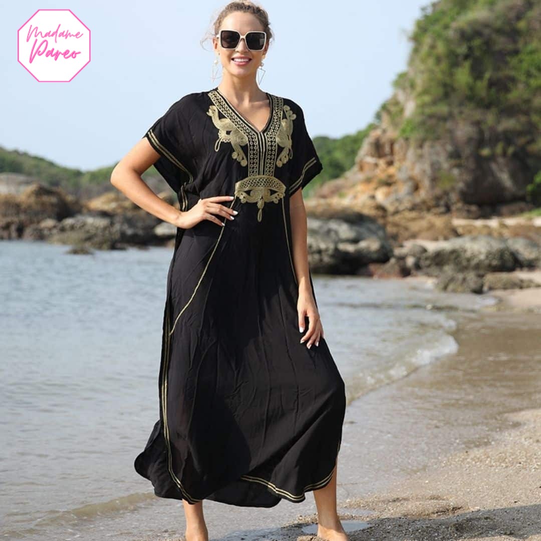 La Longue Robe de Plage à Broderie Ethnique incarne le look bohème sans effort, parfait pour échapper au quotidien et accueillir les vacances avec style. Plus qu’un simple vêtement, elle est une déclaration d’indépendance mode, offrant originalité et authenticité avec son fond noir sophistiqué. Ce choix de couleur vous permet de jouer aisément avec les accessoires, qu’il s’agisse d’un chapeau de paille, une pochette tendance ou une élégante bandoulière.