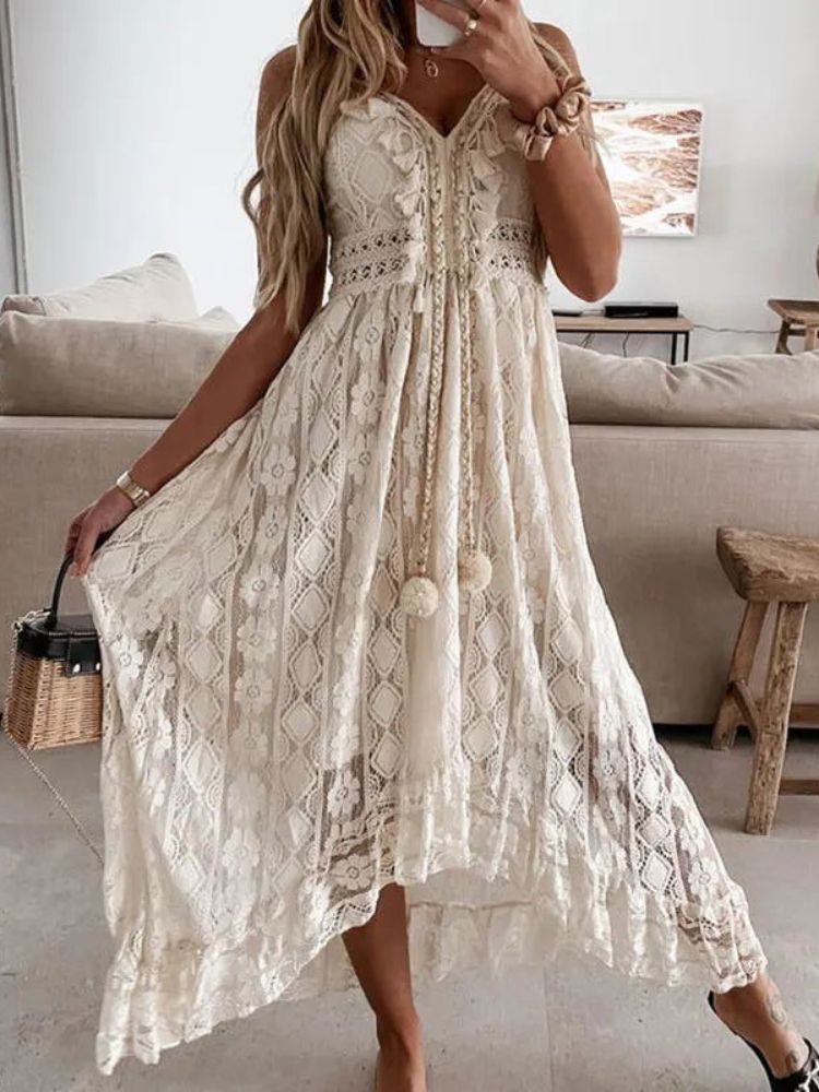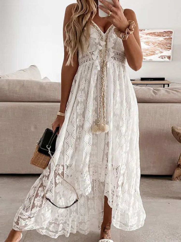 Robe Bohème Longue Col V Bas Asymétrique Bretelles