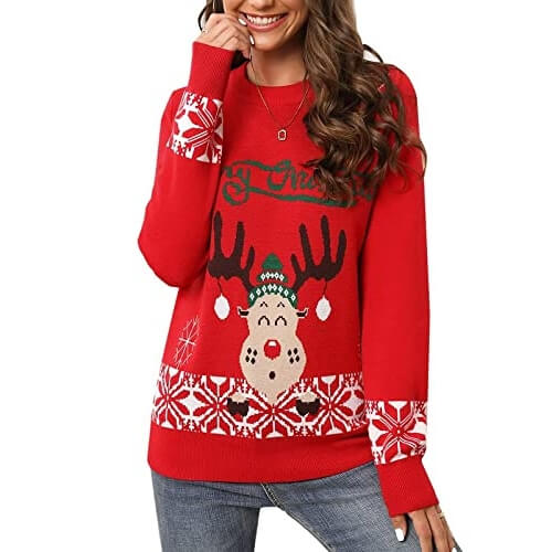 Rodolphe tâches de rousseur – Rodolphe, « Merry Christmas », rouge – Pull Noël Femme