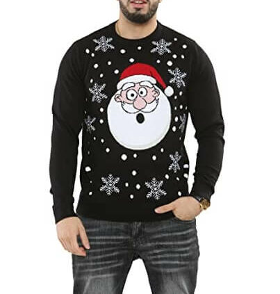 Suprise papa Noël – Pull Père Noël, noir- Pull Noël Homme