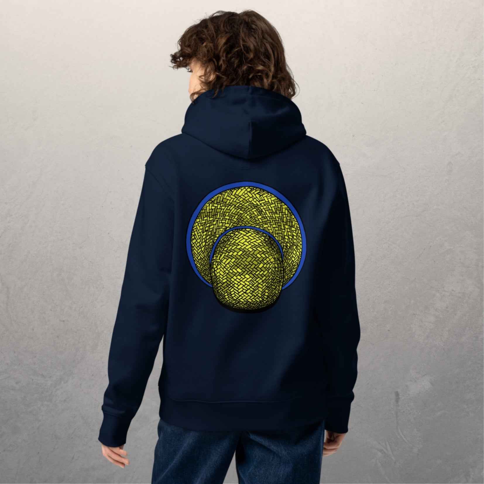Sweat à capuche en coton biologique unisexe – 350g/m² – Le Chapeau cambodgien bleu