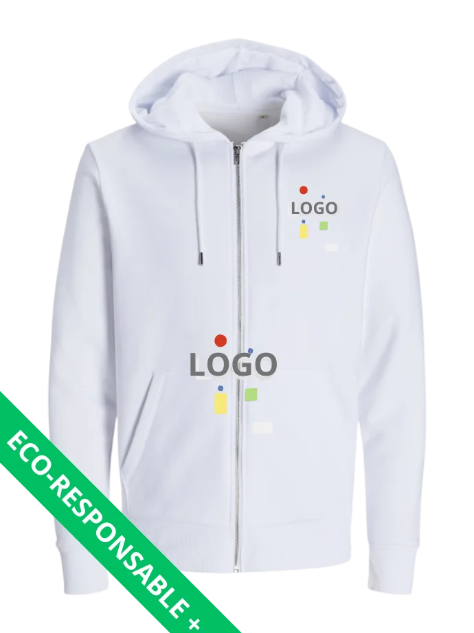 Sweat à capuche zippé unisexe : Confort, praticité et style intemporel Composition: 80% coton organique et 20% polyester recyclé certifié. / 300 gr/m² / ECO RESPONSABLE / OEKO TEX/VEGAN APPROUVED Guide des tailles: Nos partenaires de livraisons: SELECTIONNEZ VOS OPTIONS DE PERSONNALISATION CI-DESSOUS: