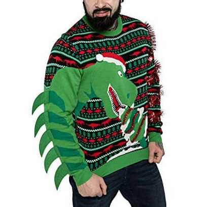 T-rex vegan – dinosaure, sapin, Pull Noël 3D- Pull moche pour Noël Unisexe